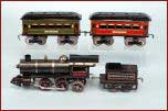 Collectors fortunate enough to visit the Kuenhle basement, surely received an advanced degree in toy train education before leaving. He was thorough in his descriptions, and used original catalogs like a Bible. Many of the sets contain transitional cars used and noted by all collectors during company take-overs, and these are usually the most sought after today. Add a few prototypes and the collection rounds out to a very important grouping. O gauge dominates the collective grouping, but Bernard amassed a good cross section of Ives and American Flyer standard gauge. Early Ives Trolleys weigh special attention, including the 800 model, and other entries make equally impressive finds. Lionel fills a table or two, and accessories go along with all three-toy train sessions. Early clockwork Ives, and Chicago coach sets by American Flyer fill a few shelves, and collectors can expect almost everything in between to complete the variety. The Gallery has attempted to make the sale as collector friendly as possible, and the entire train collection will be sold on Sunday, November 20, with an estimated starting time of 12:a.m. Approximately 400 plus lots will make their way to the podium, and everyone is encouraged to mark their calendars for this important event. Several additions to the train collection have been added including an extremely rare J. Butcher scale model Steam engine from the late 1800's, a Carlisle and Finch Trolley with car, and a few Lionel standard gauge sets.